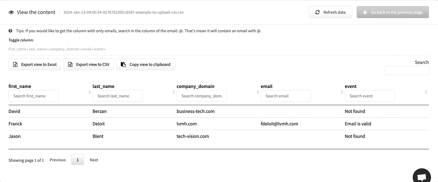 Just upload a file with names and company info and finds emails like magic.